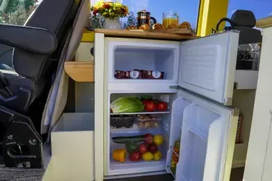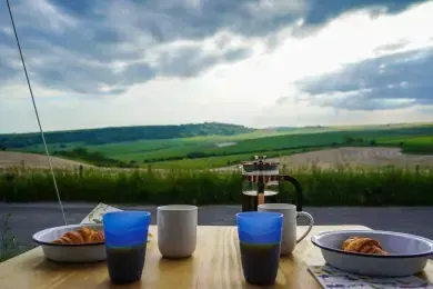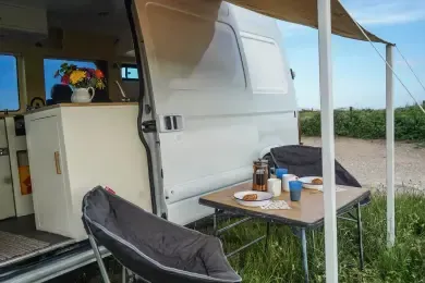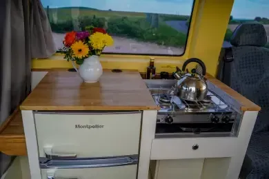 Breakfast with a view? Oh yes. The built-in 2-ring gas hob and grill make whipping up pancakes or paninis a breeze. Whether you're sipping a morning brew in bed with the back doors flung open, or gathered around the sliding table planning your next hike – Calvi sets the scene for unforgettable mornings.
